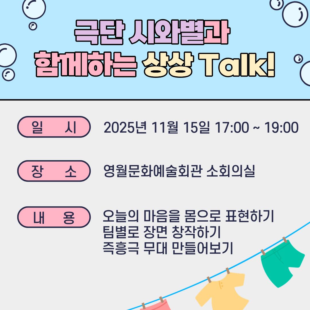 2025 꿈의 극단 [연극 톡! 상상 톡!] 2회차 참여자 모집(2025.11.15 토 15:00~19:00)