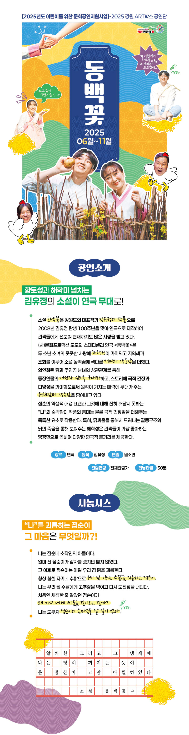 <2025년도 어린이를 위한 문화공연지원사업-강원 ART박스 공연단>의 공연을 추진하고 있습니다. 이에 강원문화재단과