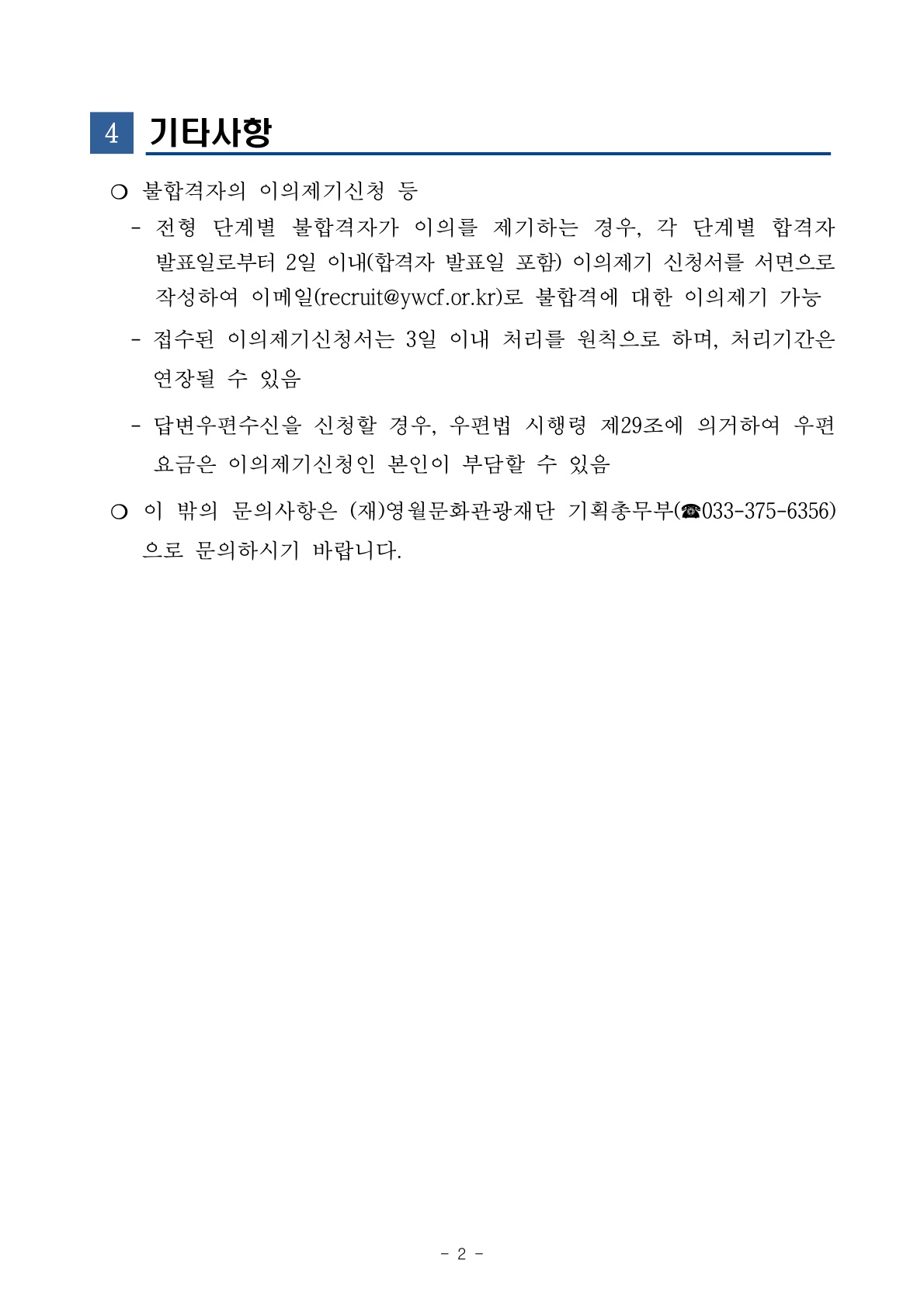 2024년 (재)영월문화관광재단 제2회 직원(정규직 및 기간제) 채용 최종합격자 공고