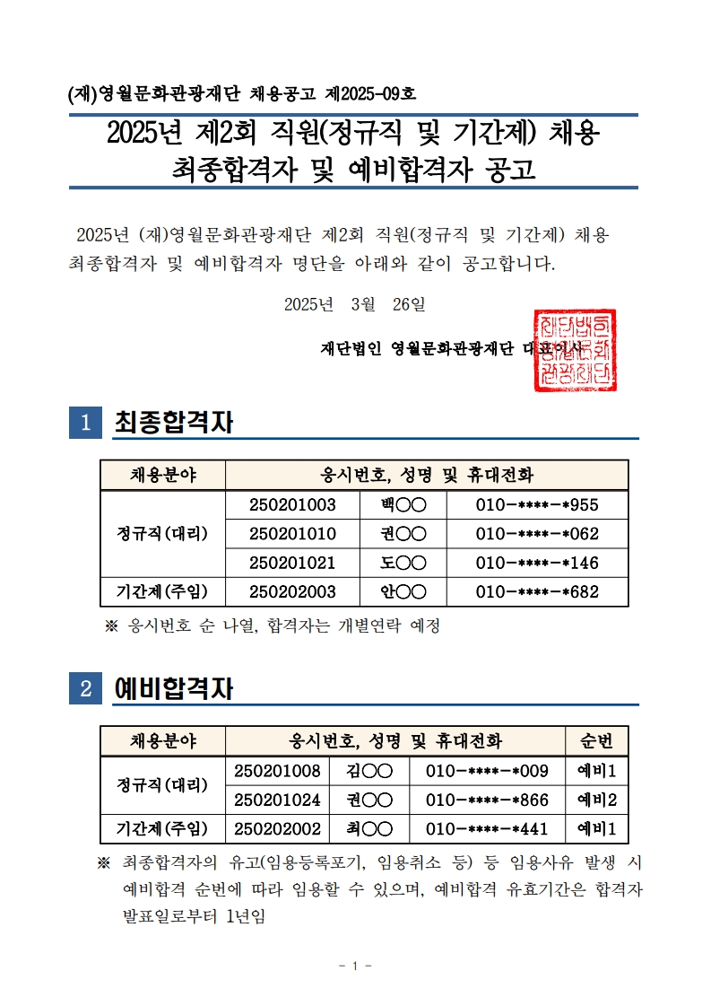 2025년 제2회 직원정규직 및 기간제 채용 최종합격자 및 예비합격자 공고_1.jpg
