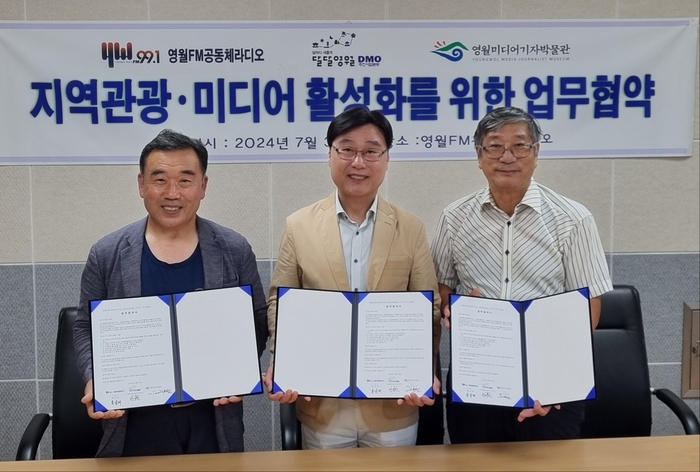 세 단체는 지난달 31일 강원특별자치도 영월FM공동체라디오 방송국에서 업무협약식을 체결했다. 협약식에는 영월문화관광재단 박상헌 대표, 영월미디어기자박물관 고명진 관장, 영월FM공동체라디오 홍성래 이사장이 참석했다.