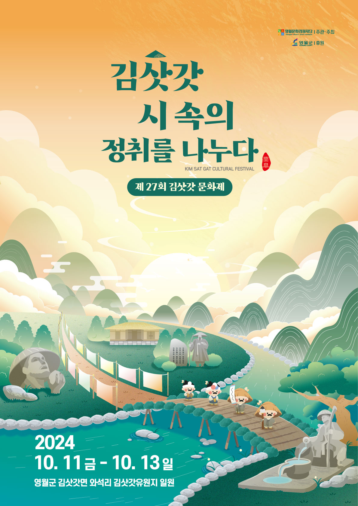 (재)영월문화관광재단은 자연, 역사, 문화, 예술이 공존하는 문화도시 영월에서 난고 김병연(김삿갓) 선생의 시대정신과 문학예술혼을 추모하고, 문학적 가치를 재조명하는 ‘제27회 김삿갓문화제’를 10월 11일(금)부터 10월 13일(일)까지 3일간 영월군 김삿갓면 김삿갓유원지 일원에서 개최한다.