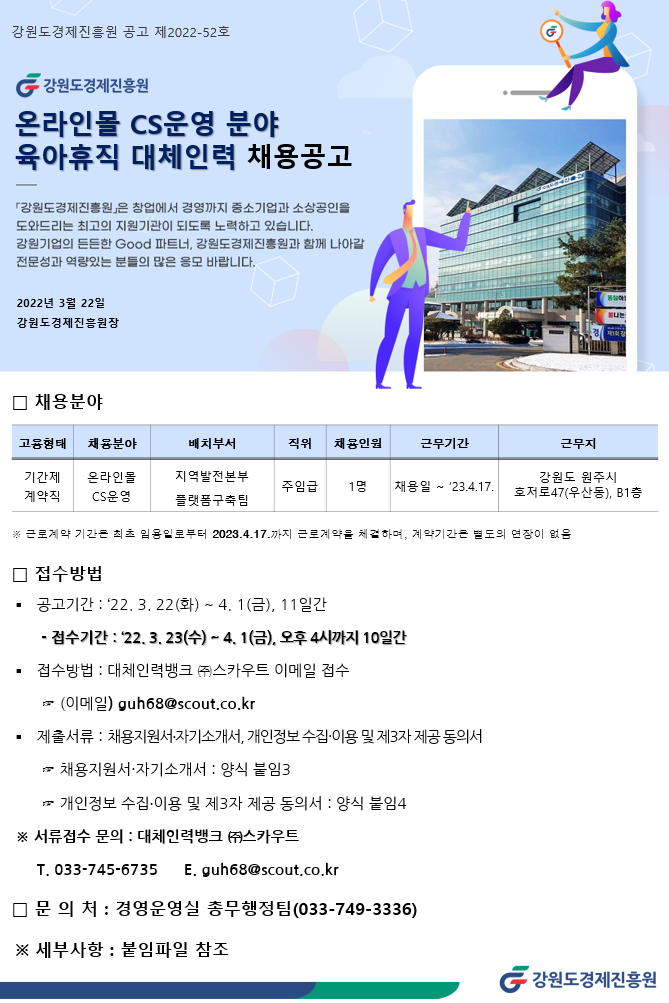 [강원도경제진흥원] 지역발전본부 출산휴가·육아휴직 대체인력 채용공고