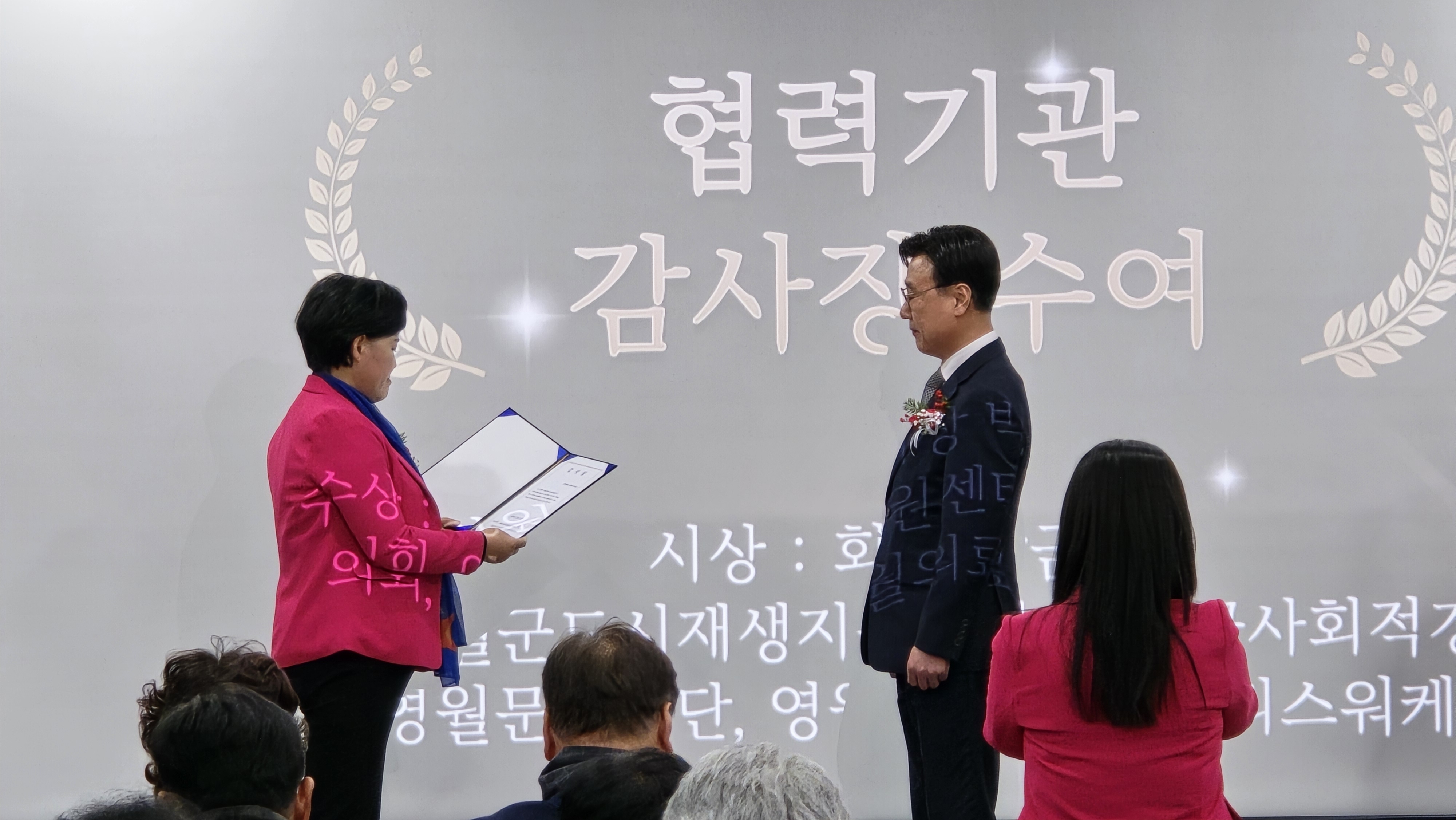 우리 재단은 상생협력을 위한 협약 체결 등 다양한 봉사활동의 기회를 넓힌 공로로 감사장을 받았습니다.
