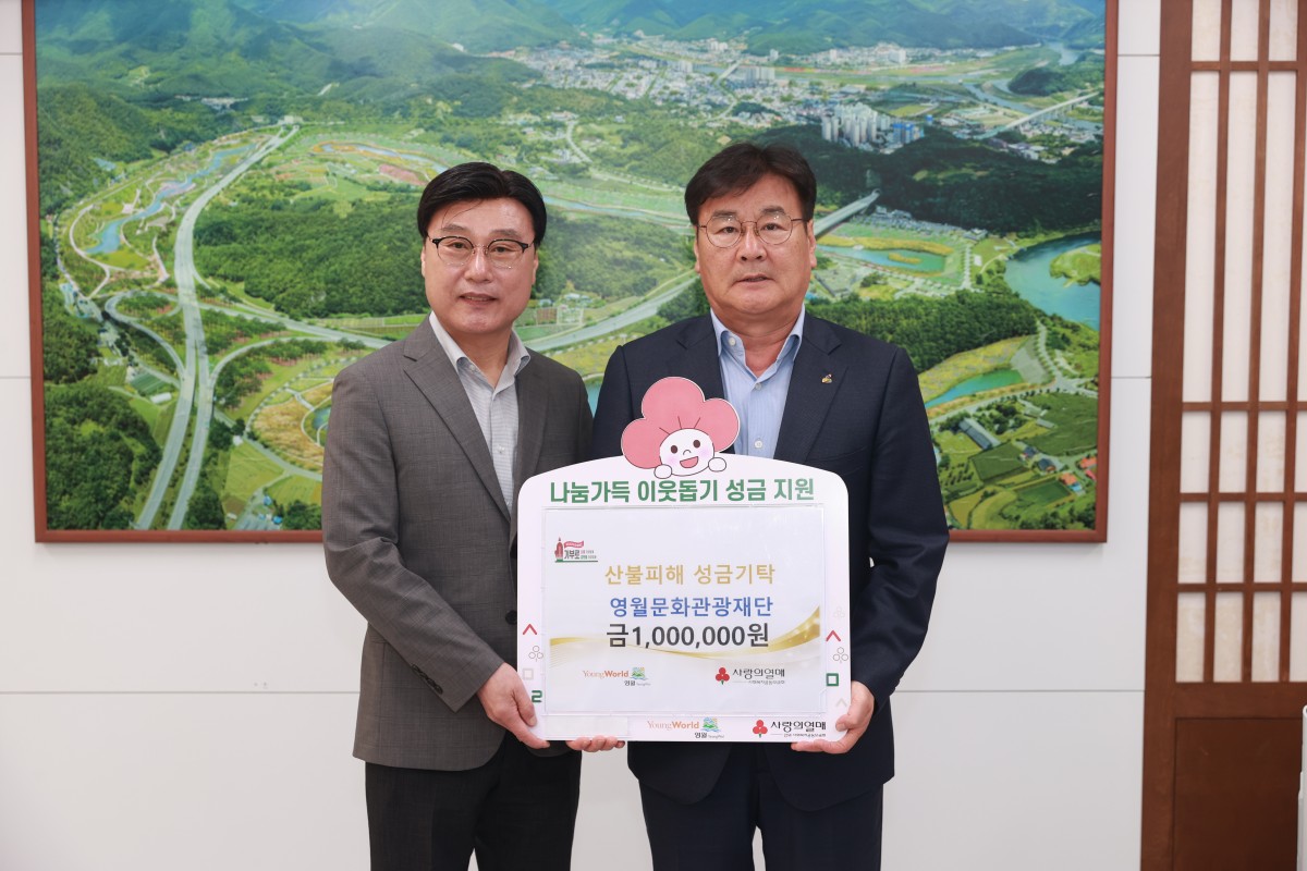 영월문화관광재단(대표이사 박상헌)은 4월 21일 영남지역 산불피해 복구를 위해 재해성금 100만원을 기부하였습니다.