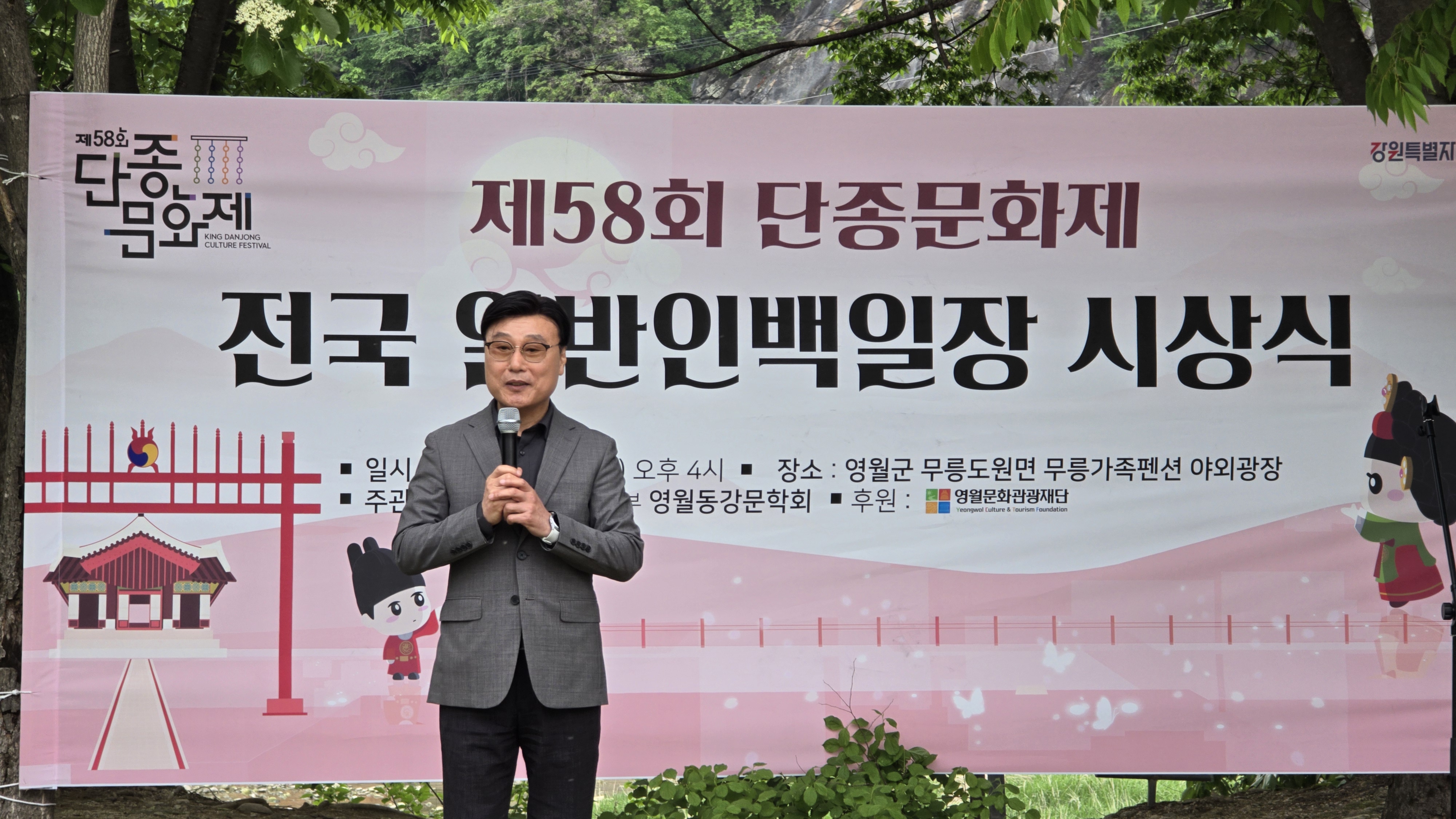 영월문화관광재단 박상헌 대표이사는 5월 15일 무릉가족팬션에서 개최된 '제58회 단종문화제 전국 일반백일장 시상식'에 참석하였습니다.