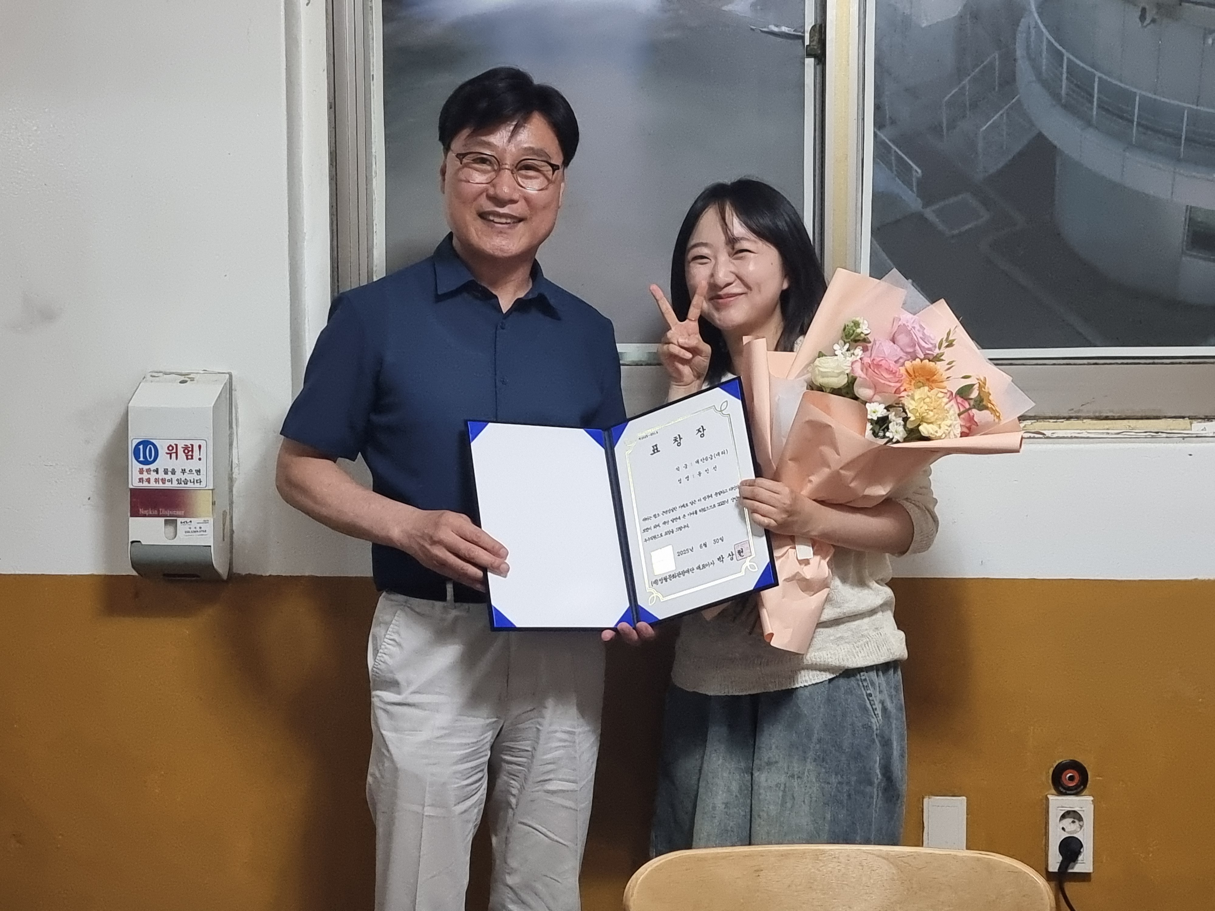 관광축제부 김민소 차장(단종문화제 기획 및 운영 등)과 문화예술부 윤인선 대리(문화예술 국도비 공모사업 등)가 수상자로 선정 되었습니다.