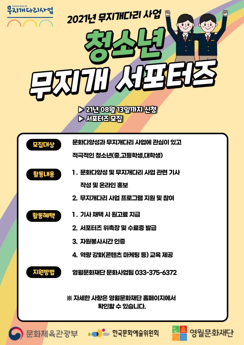 2021년 무지개다리 사업 청소년 서포터즈 모집(마감)