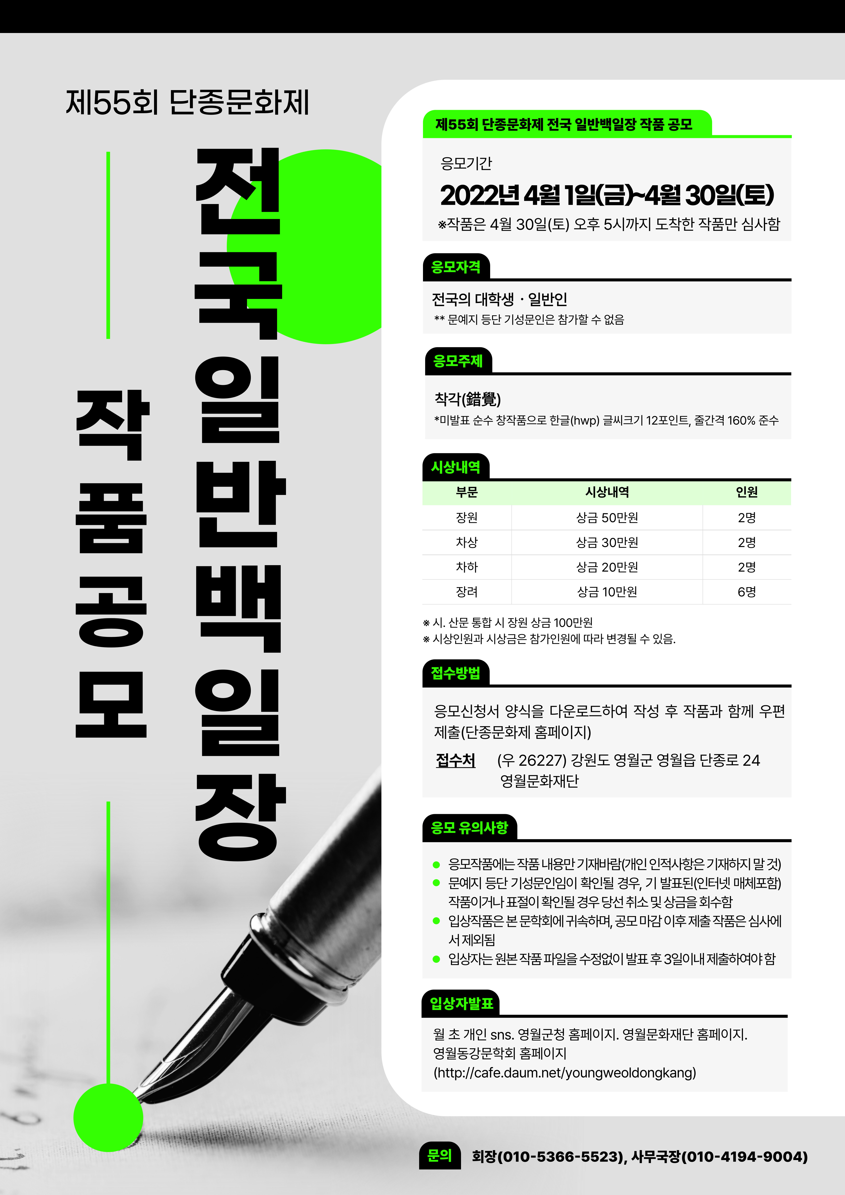 ※ 시. 산문 통합 시 장원 상금 100만원