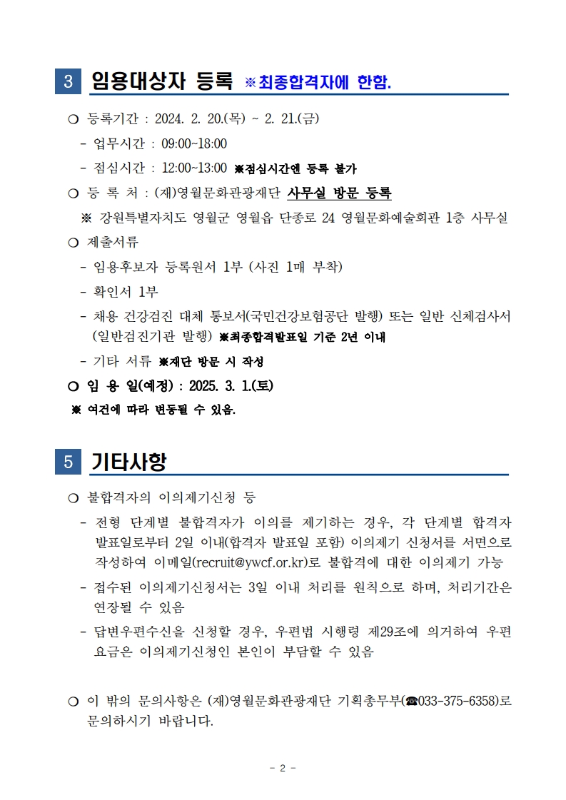 2025년 (재)영월문화관광재단 제1회 직원(정규직) 채용 최종합격자 공고
