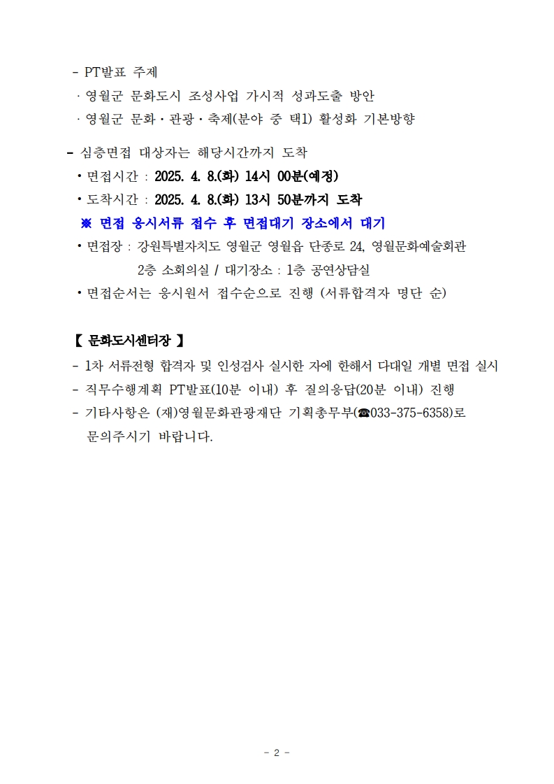 2025년 제3회 직원문화도시센터장 채용 서류전형 합격자 공고 및 면접전형 일정 안내_2.jpg