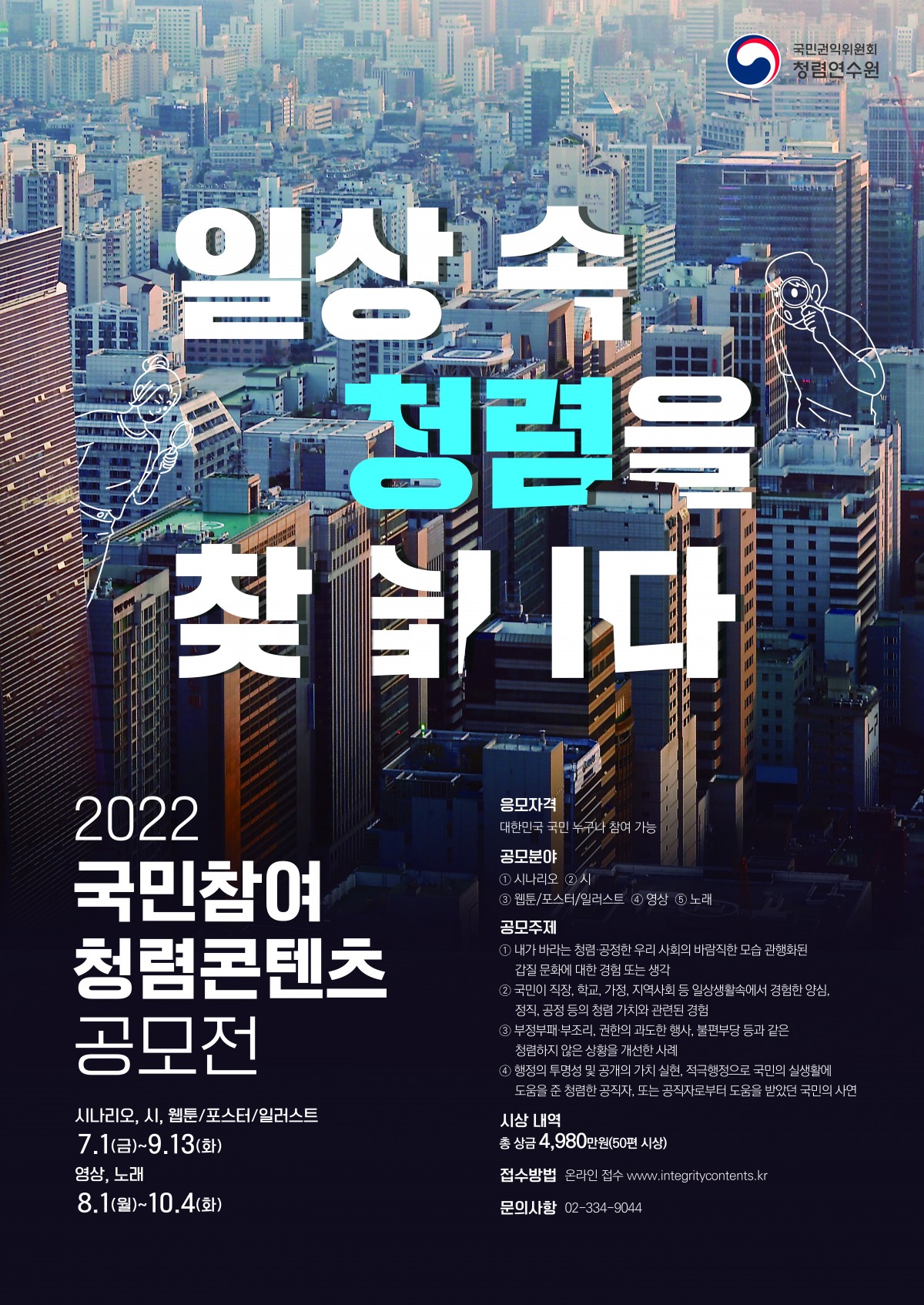 ※ 자세한 사항은 붙임파일과 공모전 홈페이지(www.integritycontents.kr)를 참고하시기 바랍니다.