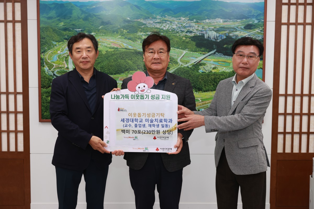 영월문화관광재단 박상헌 대표이사는 8월 27일 영월군청(군수실)에서 열린 '세경대학교 미술치료학과 이웃돕기성금 기탁식'에 참석하였습니다.