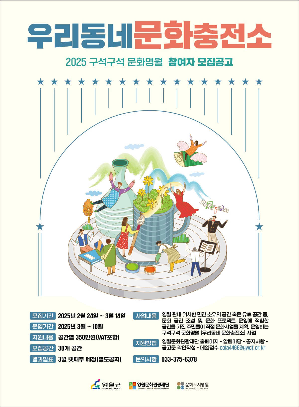 영월문화관광재단, 2025년 구석구석 문화영월 ′우리동네 문화충전소′참여자 모집