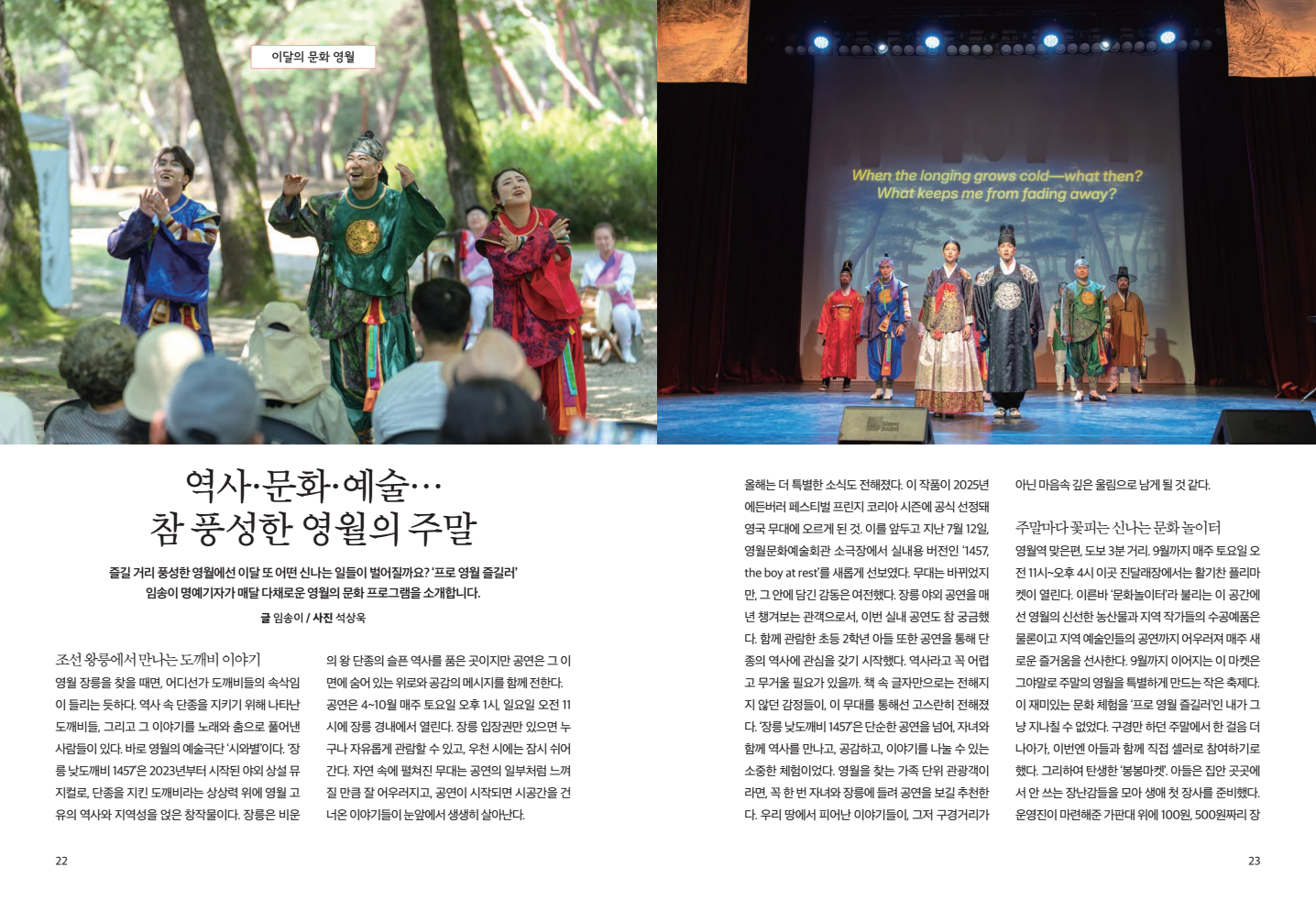 [영월군정소식지]"영월 대표할 새로운 공연 콘텐트 기대하세요!" 뮤지컬 '단종,1698,10월 2~5일 장릉서 초연