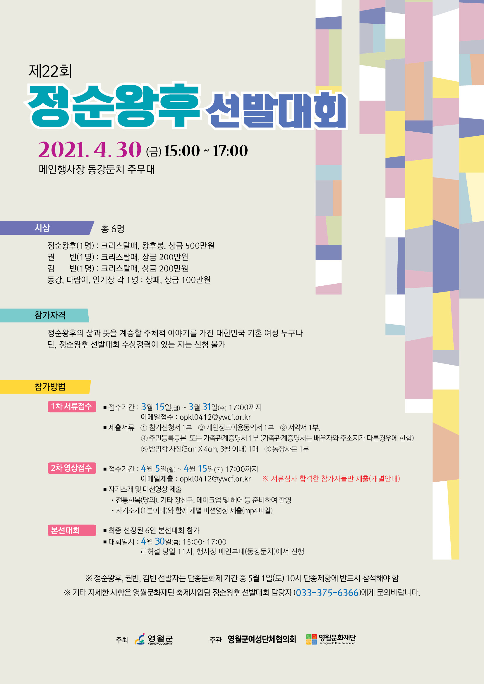 붙임. 제22회 정순왕후 선발대회 참가자 모집 공고문 1부.