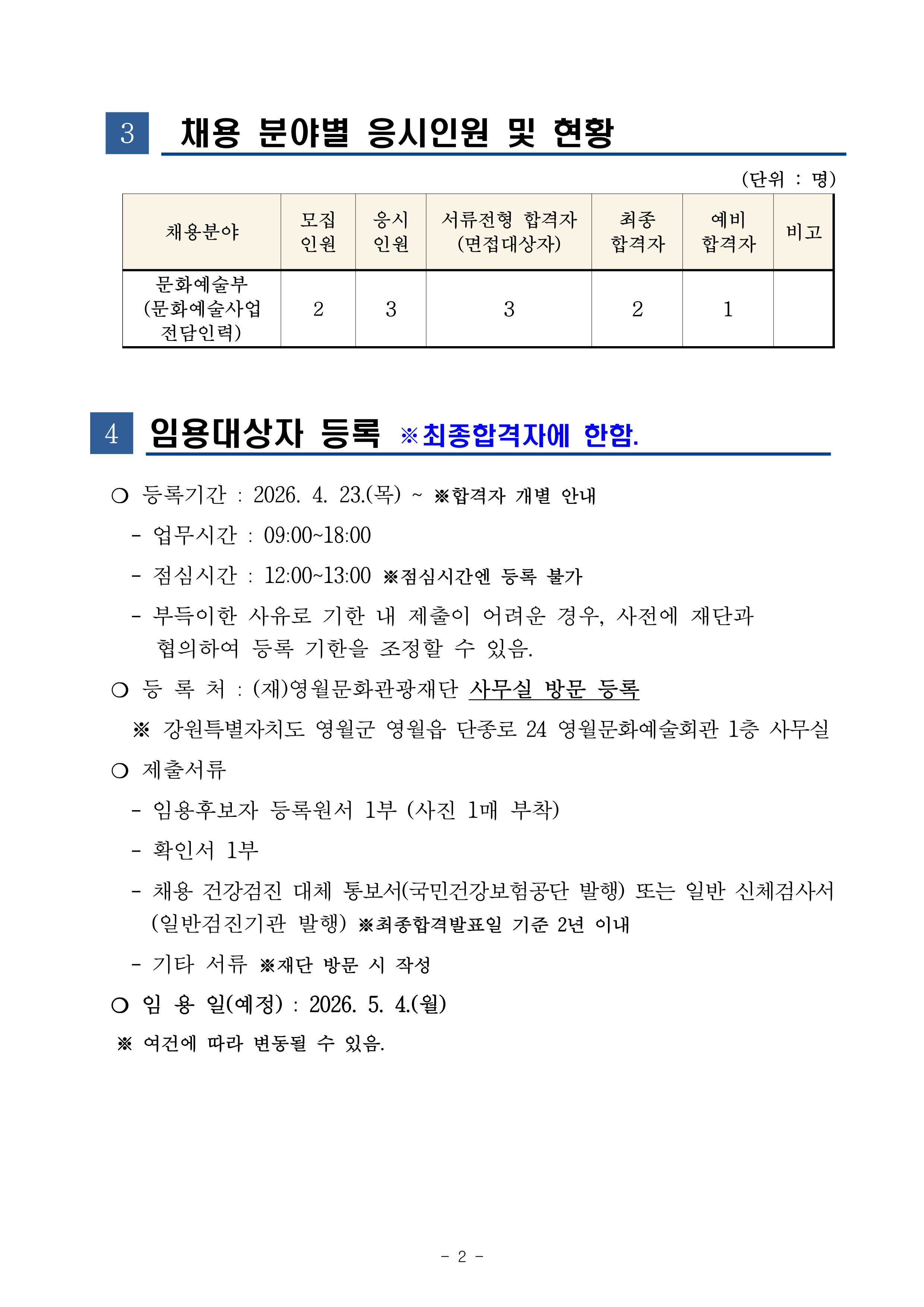 2026년 (재)영월문화관광재단 제4회 직원(기간제근로자) 채용 최종합격자 제출 서식.hwp