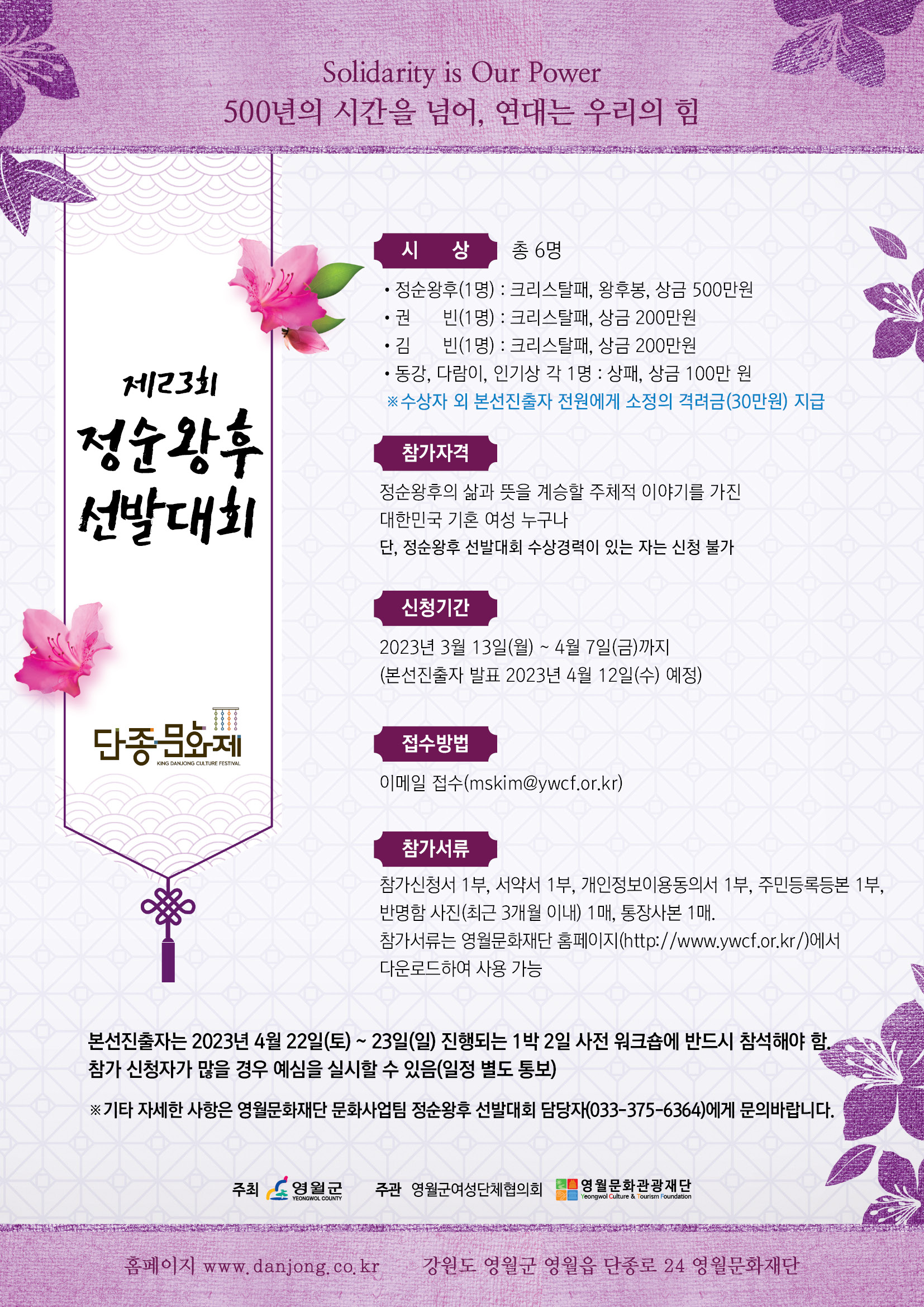 제23회 정순왕후 선발대회 참여자 모집 공고