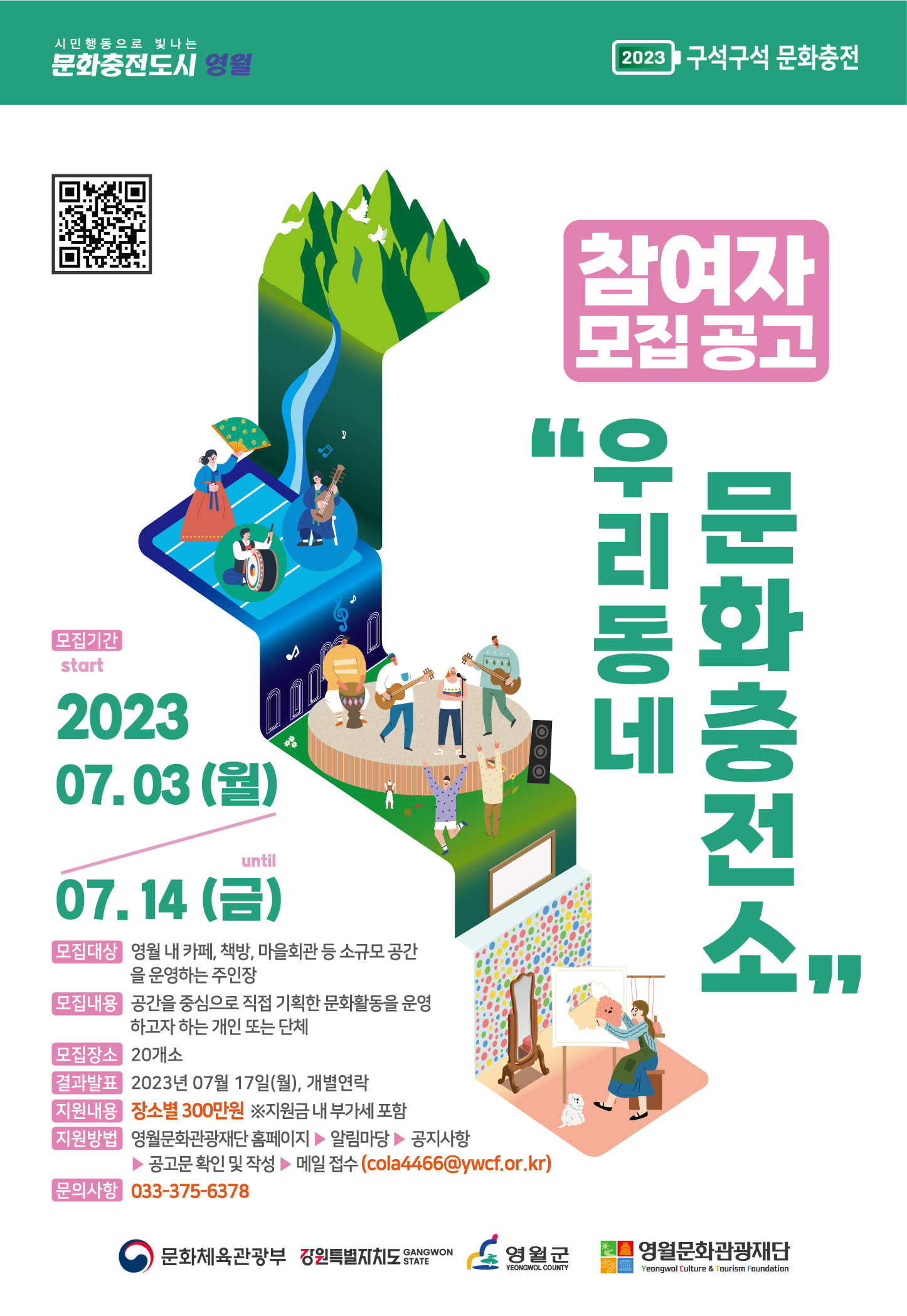 우리 동네에 딱 맞는 문화 프로그램을 기획하고, 나만의 공간을 우리의 공간으로 변화 시키고자 하는 분들의 많은 관심과 신청을 기다립니다!