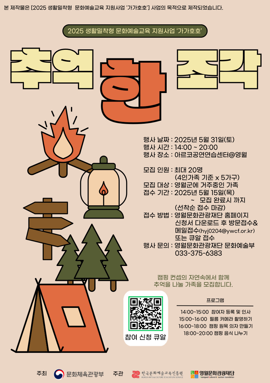 2025년 생활밀착형 문화예술교육 지원사업 ‘가가호호’ 사업의 홍보형 프로그램 「추억 한 조각」의 참여가족을 모집합니다.