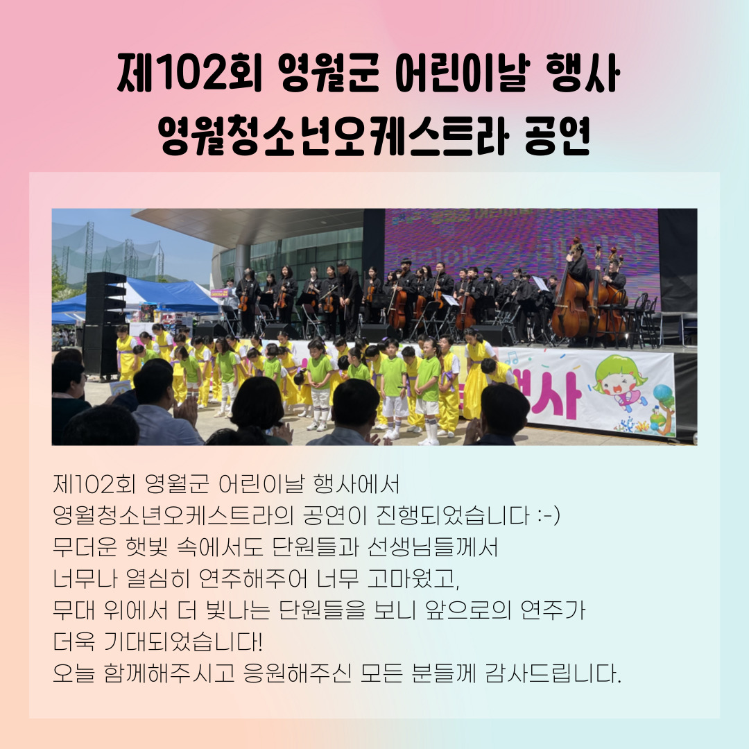 [2024 문화예술교육사업] 영월청소년오케스트라 제102회 어린이날 행사 공연