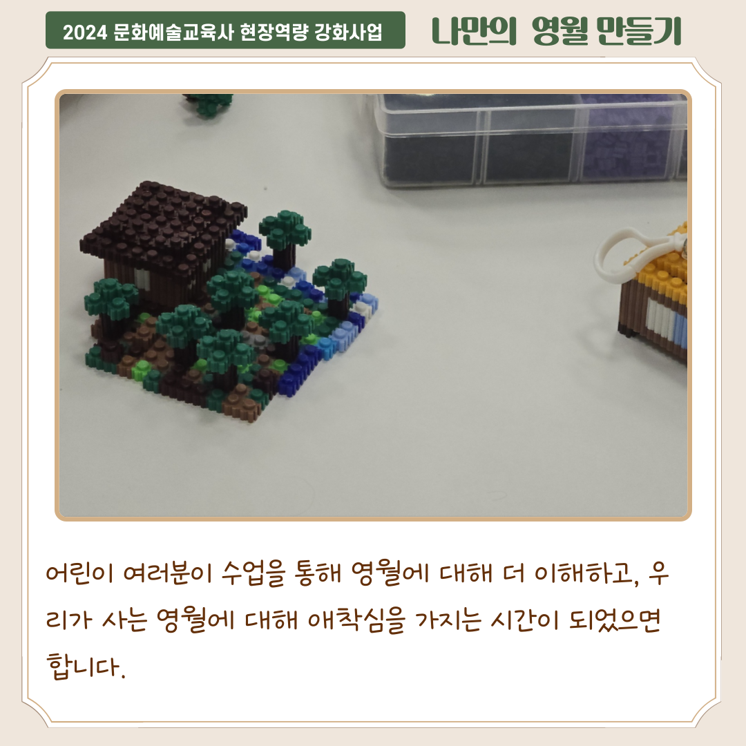 어린이 여러분이 수업을 통해 여러분이 영월에 대해 더 이해하고, 우리가 사는 영월에 대해 애착심을 가지는 시간이 되었으면 합니다.