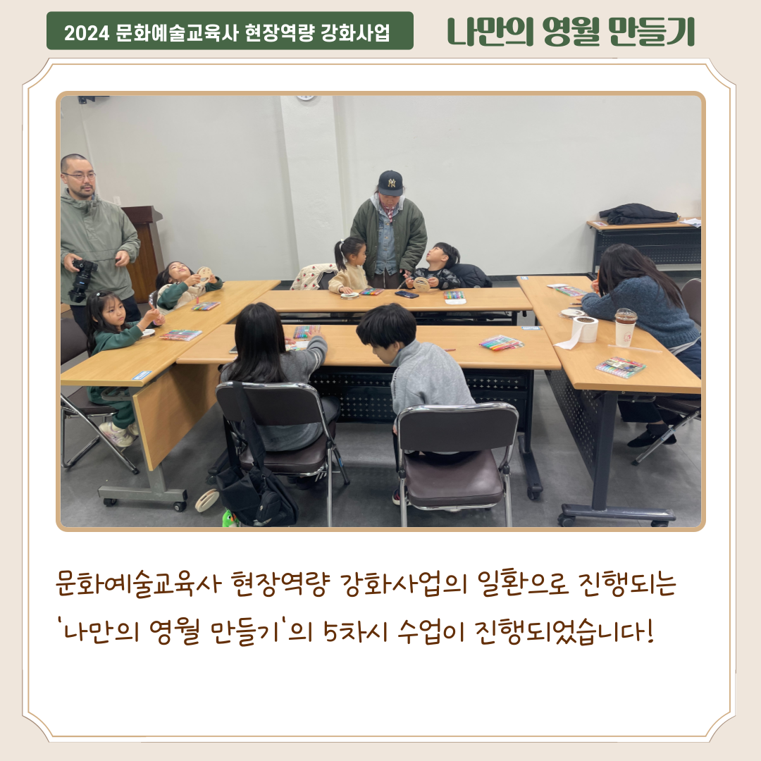 문화예술교육사 현장역량 강화사업의 일환으로 진행되는 '나만의 영월 만들기'의 5차시 수업이 진행되었습니다.