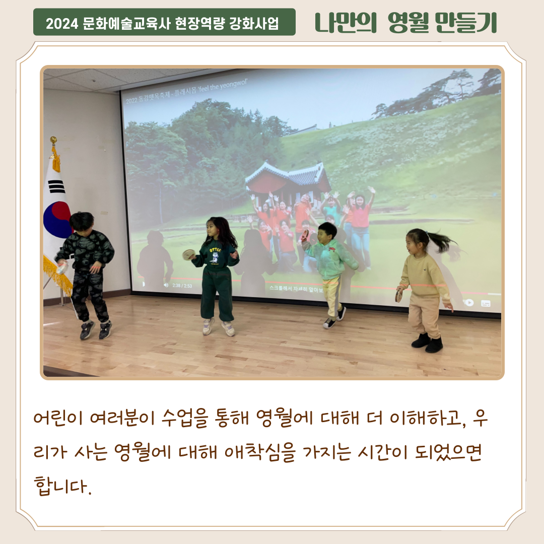 어린이 여러분이 수업을 통해 영월에 대해 더 이해하고, 우리가 사는 영월에 대해 애착심을 가지는 시간이 되었으면 합니다
