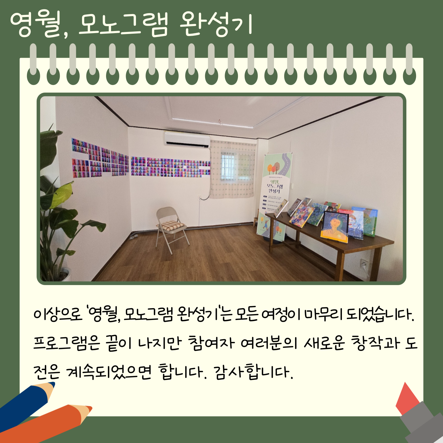 이상으로 '영월, 모노그램 완성기'는 모든 여정이 마무리 되었습니다.